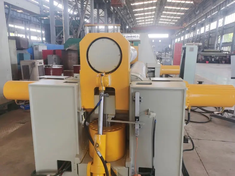 上輥的右軸承座與主油缸相連。只有拆下連接螺栓,三輥卷板機(jī)才能軸向拉出,從而快速完成換卷工作。