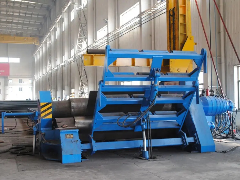 2. 四輥卷板機(jī)送料:水平喂入鋼板,使鋼板末端與整個前輥接觸,然后將前輥降低到原始位置。